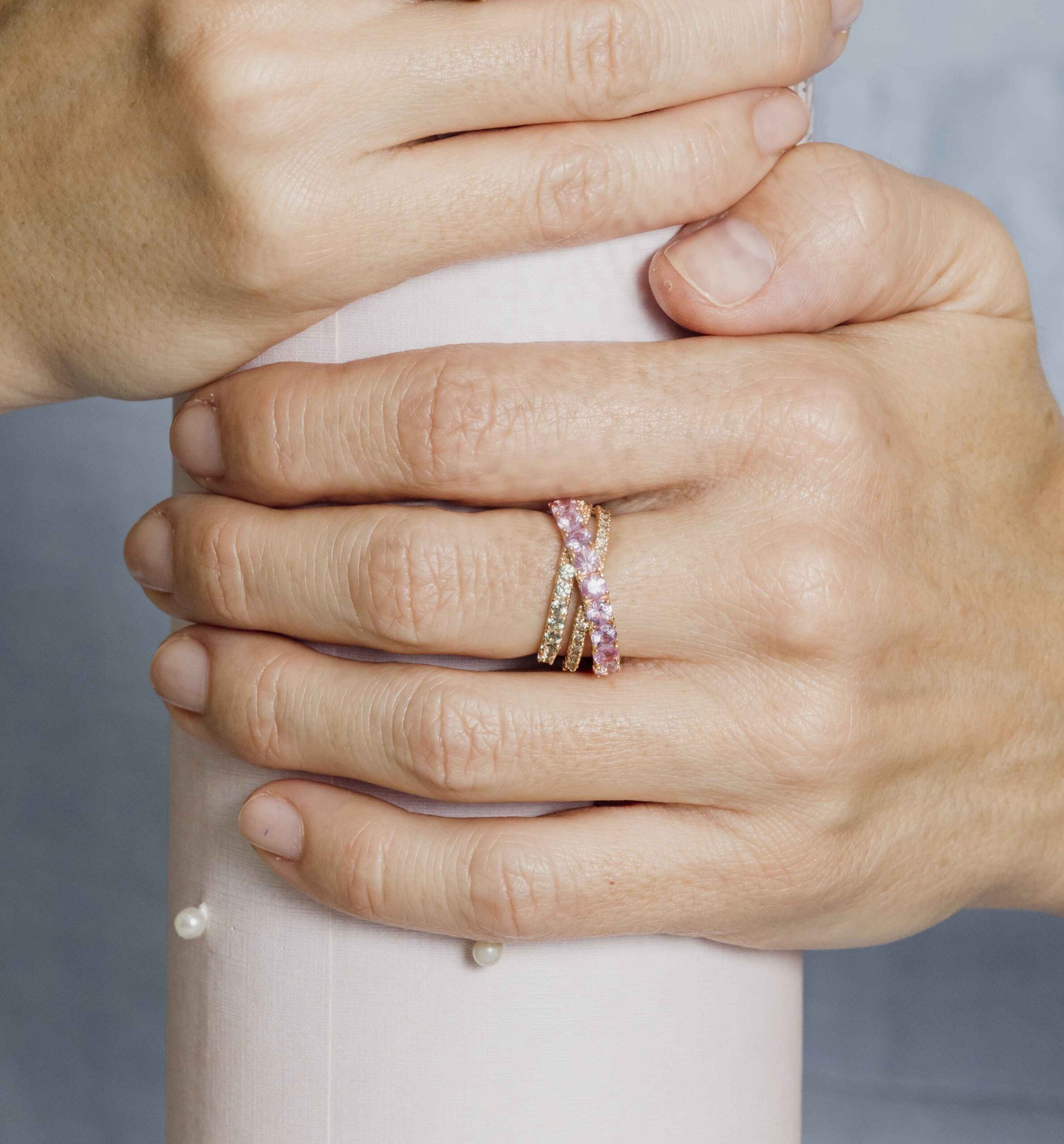 Sortija de oro 18k topacio rosa, diamantes